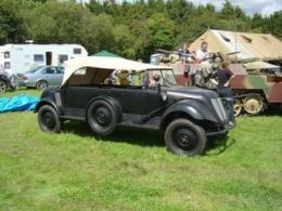 工厂很快就放弃了这个项目,开始在KdF-wagens的底盘上建造军用车辆。所制造的三种型号的军用车是Kübelwagen、Schwimmwagen和Kommandeurwagen。后来,人们发现希特勒从一开始就有这个想法,他秘密要求保时捷增加了这些规格:汽车应该能够装载三个人、机枪和弹药。