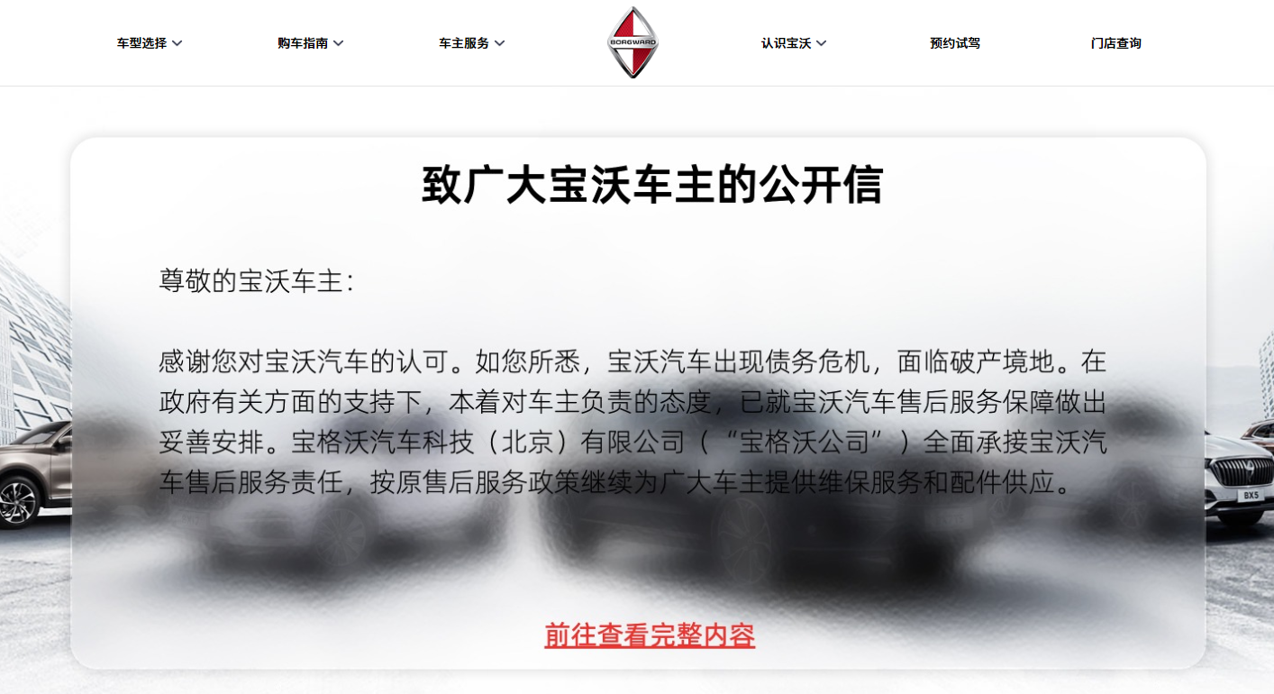 宝沃官网致车主公开信 (来源:宝沃官网)